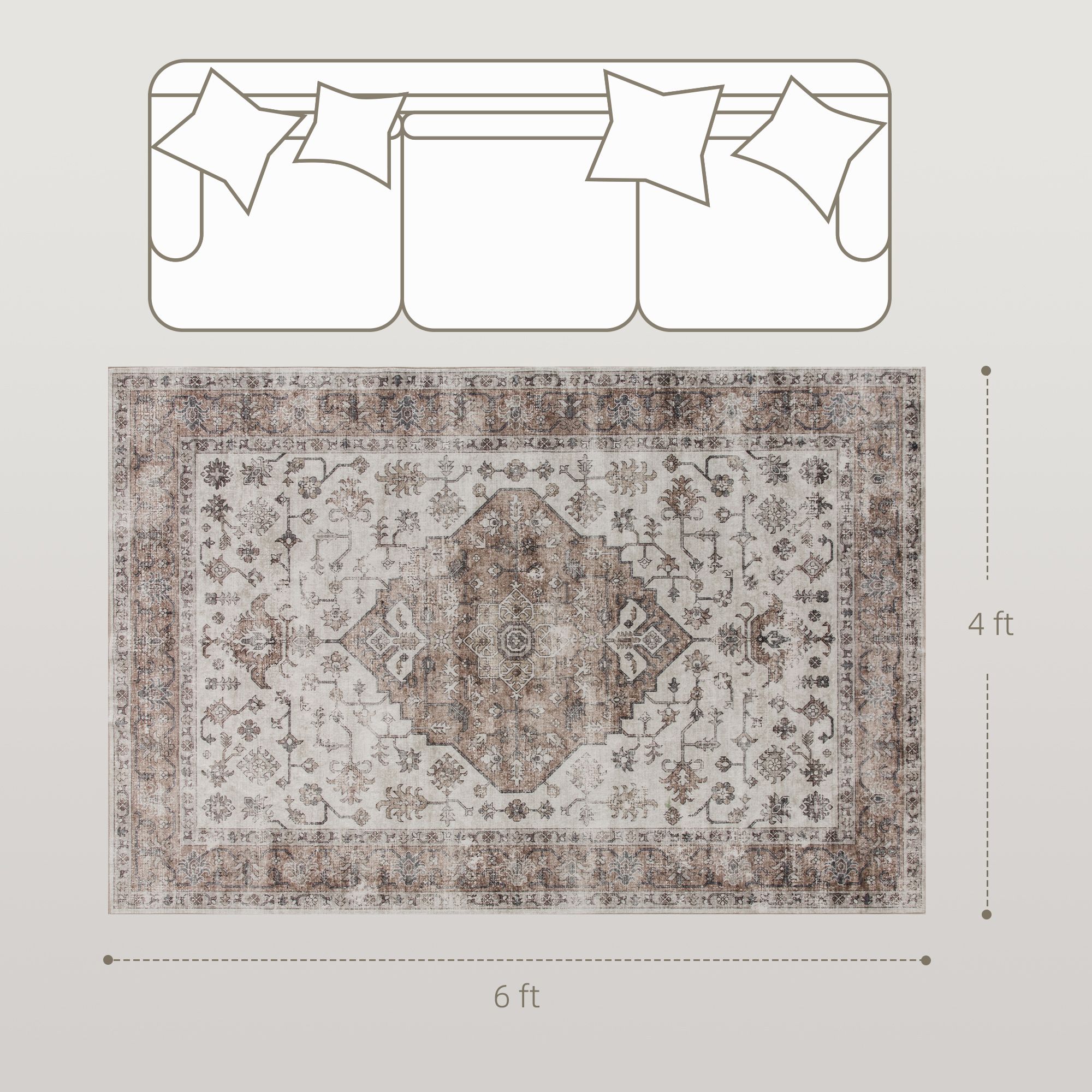 HOMCOM 4x6 Area Rug, Vintage Machine Washable Rug, Non-Slip Floor Carpet for Living Room, Bedroom, Dining Room, Tan