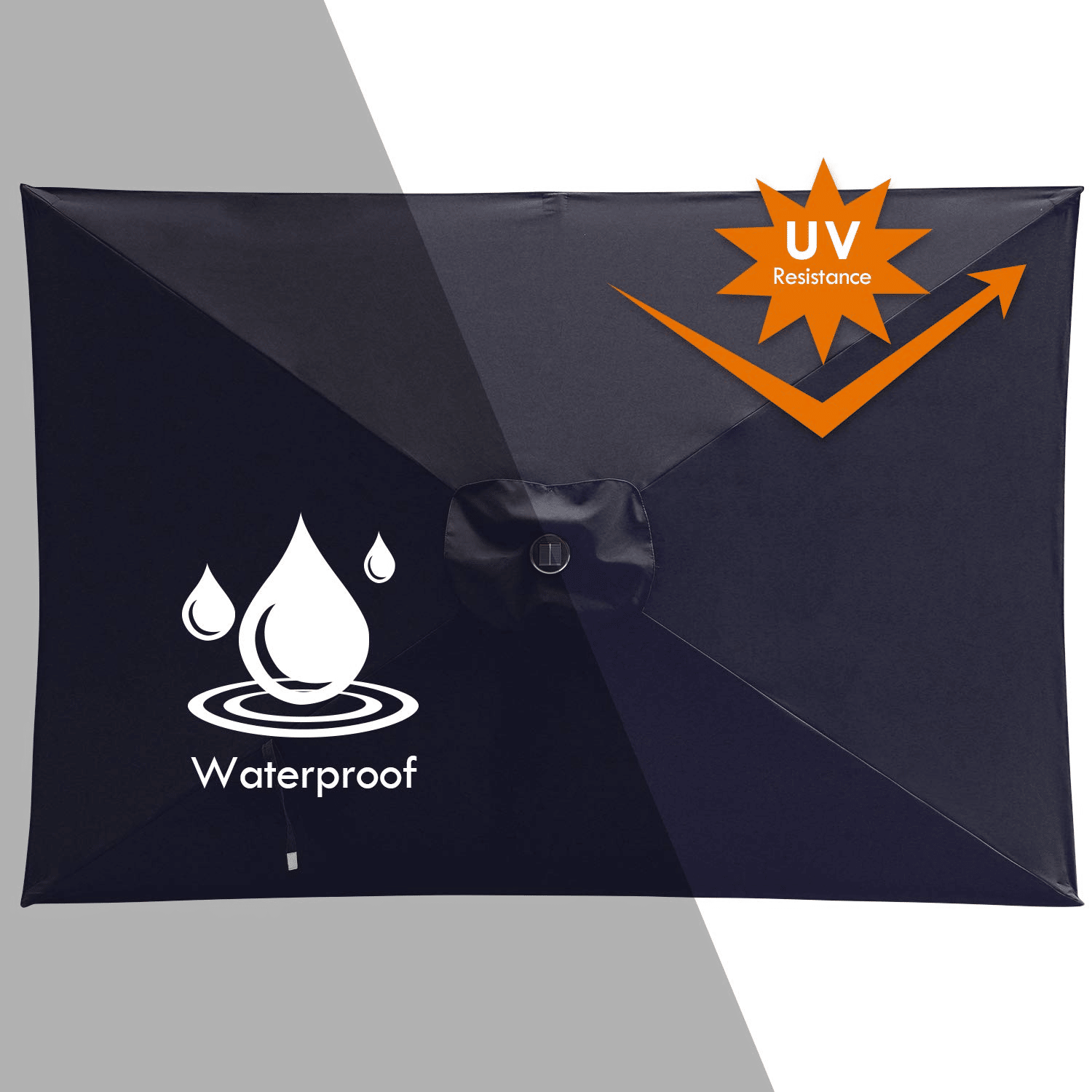 Stylish design, this rectangular patio umbrella is your best choice. Its colorful, waterproof polyester fabric provides 70 sq. ft. of sun protection, easily shading a table and chairs.