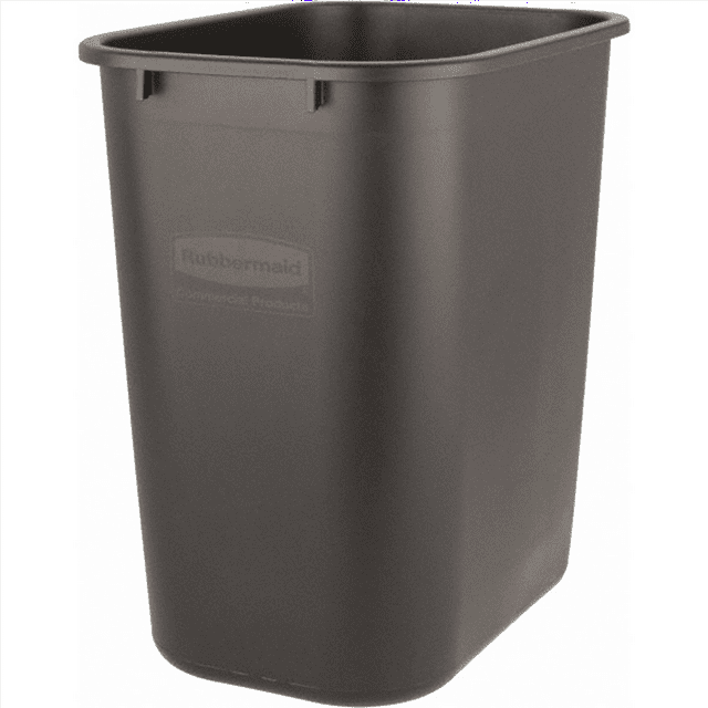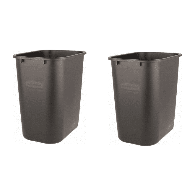 The 7 gallon black trash can is space features a open-top waste basket fits easily under a standard desk height. All-plastic construction won't chip or dent. Rolled rim adds strength. Easy to clean. 7-gal. capacity.