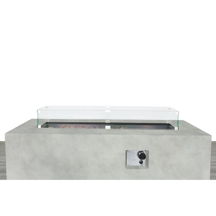 FeaturesProduct TypeFire pit tableExterior MaterialFiber Reinforced ConcreteBurning Area MaterialStainless steelFuel TypePropane; Natural gasPieces Included1 fire pit; glass flame guardGas Conversion FeatureYesGas Conversion Kit IncludedNoAdjustable FlameYesIgnition TypePush-buttonBTU Output50000 BTUHeat Resistant CoatingYesFiller AccommodatedLava rocksFiller IncludedYesFoldableNoRust ResistantYesWeather ResistantYesPortableNoSpark Screen IncludedNoLog Grate IncludedNoProduct CareClean with mild soap and waterLocationOutdoor Use OnlyIs this Product Safe for Use on Wooden Deck?Can be placed directly on wooden deckGlass Shield IncludedYesBatteries RequiredYesBatteries IncludedYesProduct ShapeRectangularSupplier Intended and Approved UseResidential Use; Non Residential UseProduct Size (16" H x 42" W x 20" D Size)SmallImportedYesBattery or Battery IncludedYesSpecificationsETL ListedYesAssemblyLevel of AssemblyNoneAssembly RequiredNoWarrantyCommercial WarrantyYesProduct WarrantyYesWarranty Length1 YearFull or Limited WarrantyLimitedWarranty Details1 Year manufacturer limited warranty