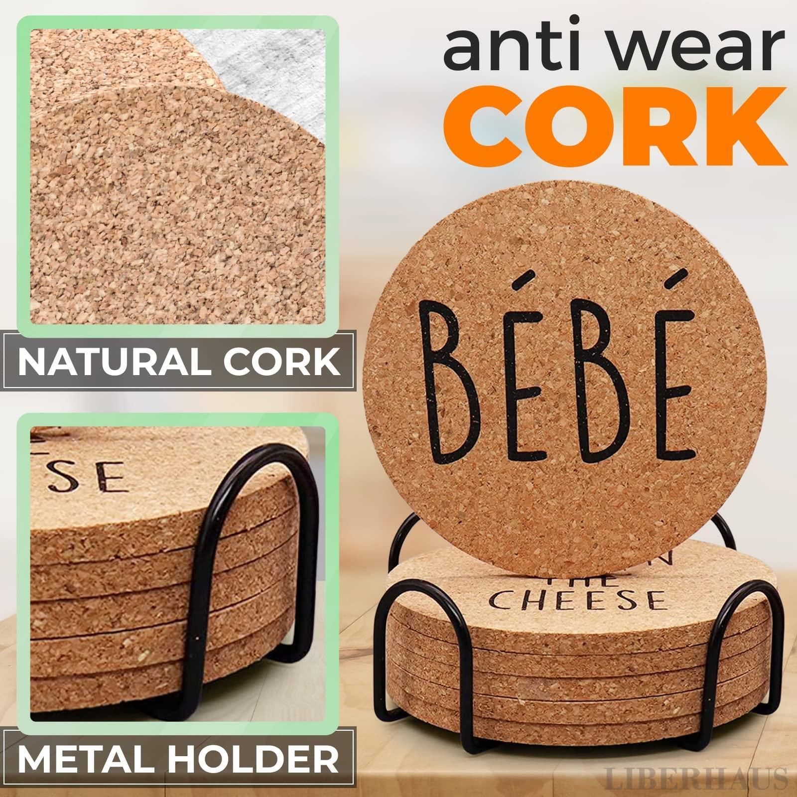 Home > Cork Coasters for Drinks Coasters Set of 6 with Holder Funny Coasters for Adults Cup Coasters for Coffee Table Home Bar Wedding Absorbent Coasters Mat