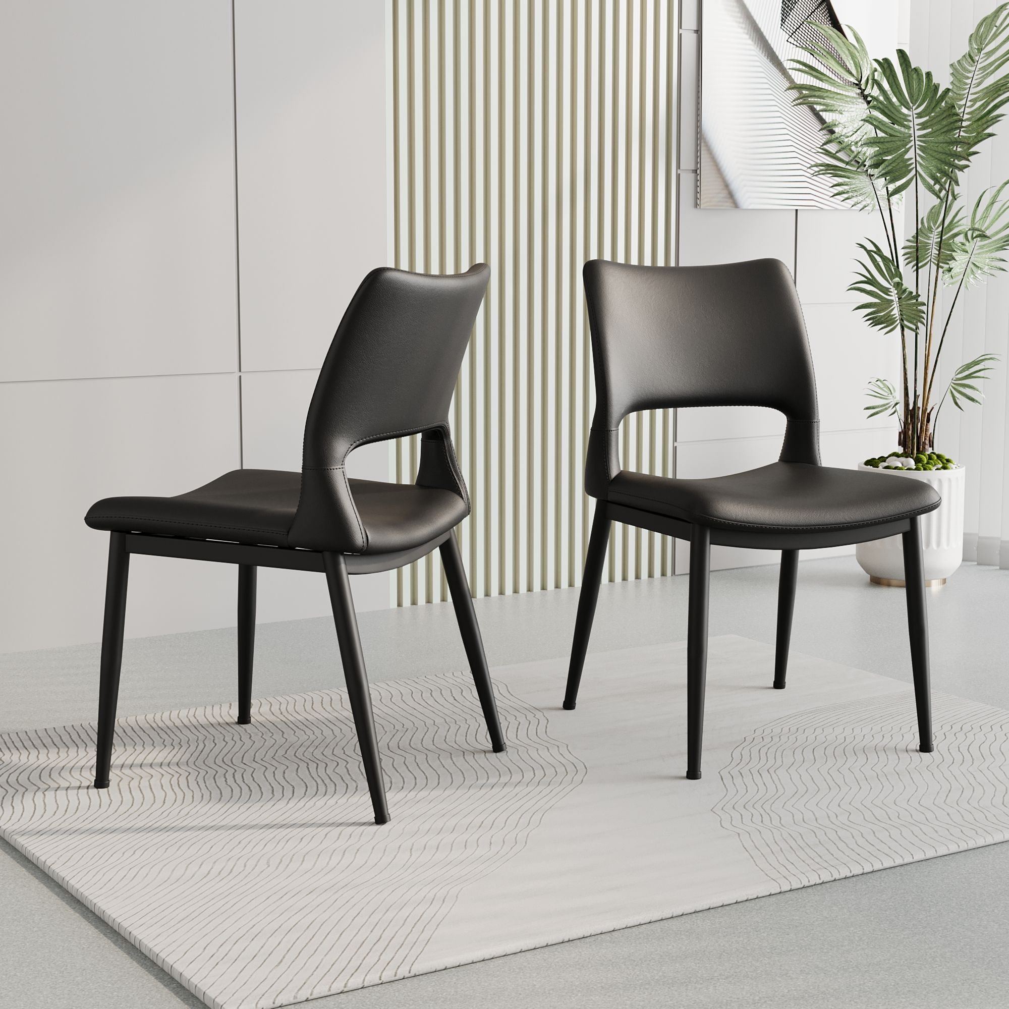 Modern minimalist black PU leather Dining Chairs Set of 2, comfortable backrest design, metal leg support, suitable for restaurants, kitchens