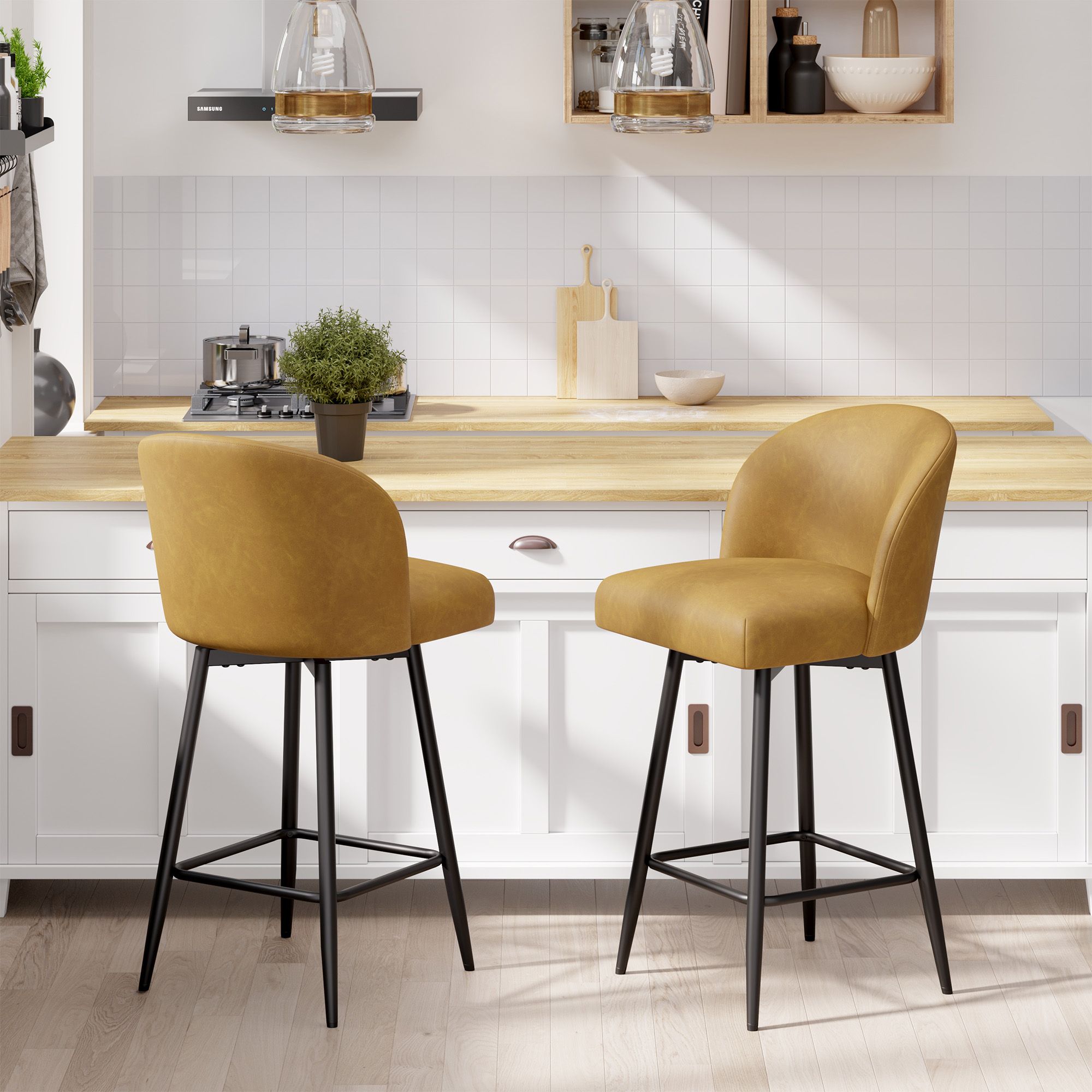 Comfortable Ergonomic Design: Our vintage PU leather bar stools feature high-density foam and an L-shaped curved backrest that conforms to your body's natural curve, ensuring maximum comfort while you enjoy drinks at your kitchen island or dining table