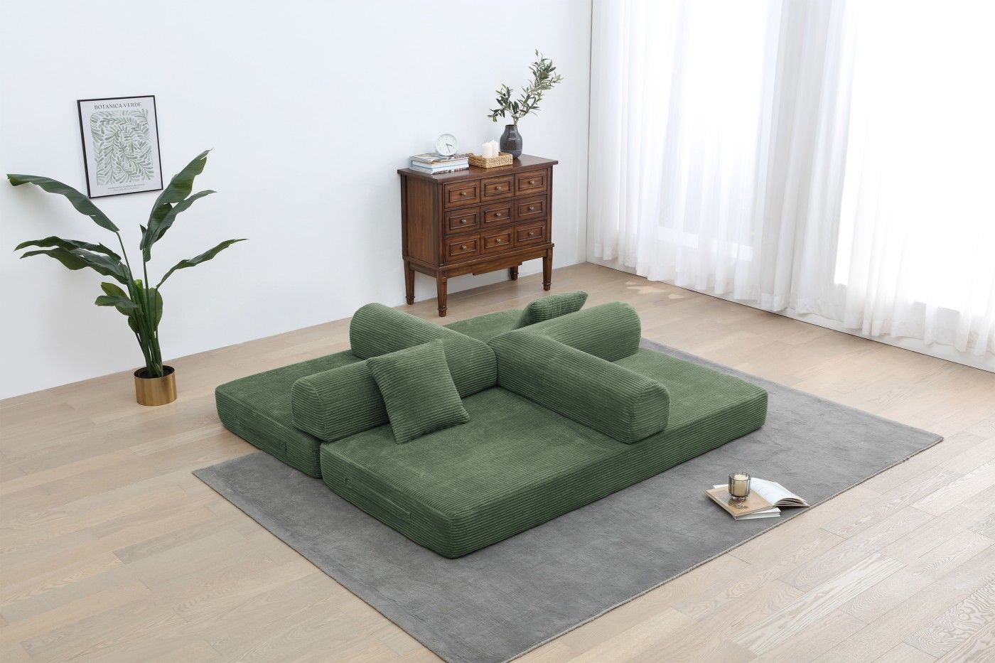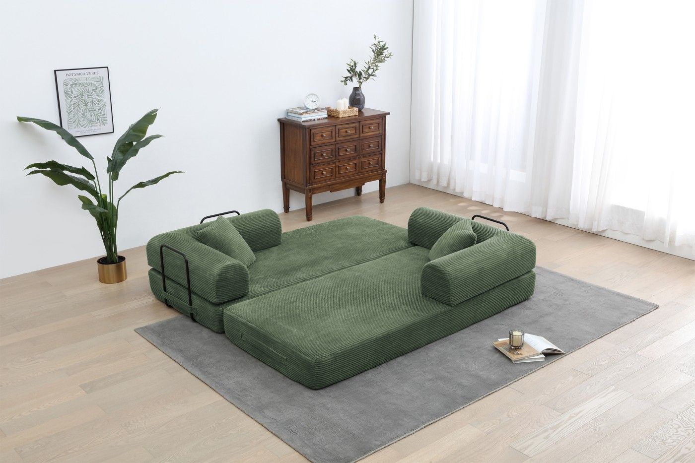 2.Premium Comfort: This convertible sofa bed is made of soft and breathable small striped corduroy fabric, equipped with high-density foam and luxurious pillows, providing excellent pressure relief and solid support to ensure ultimate relaxation.