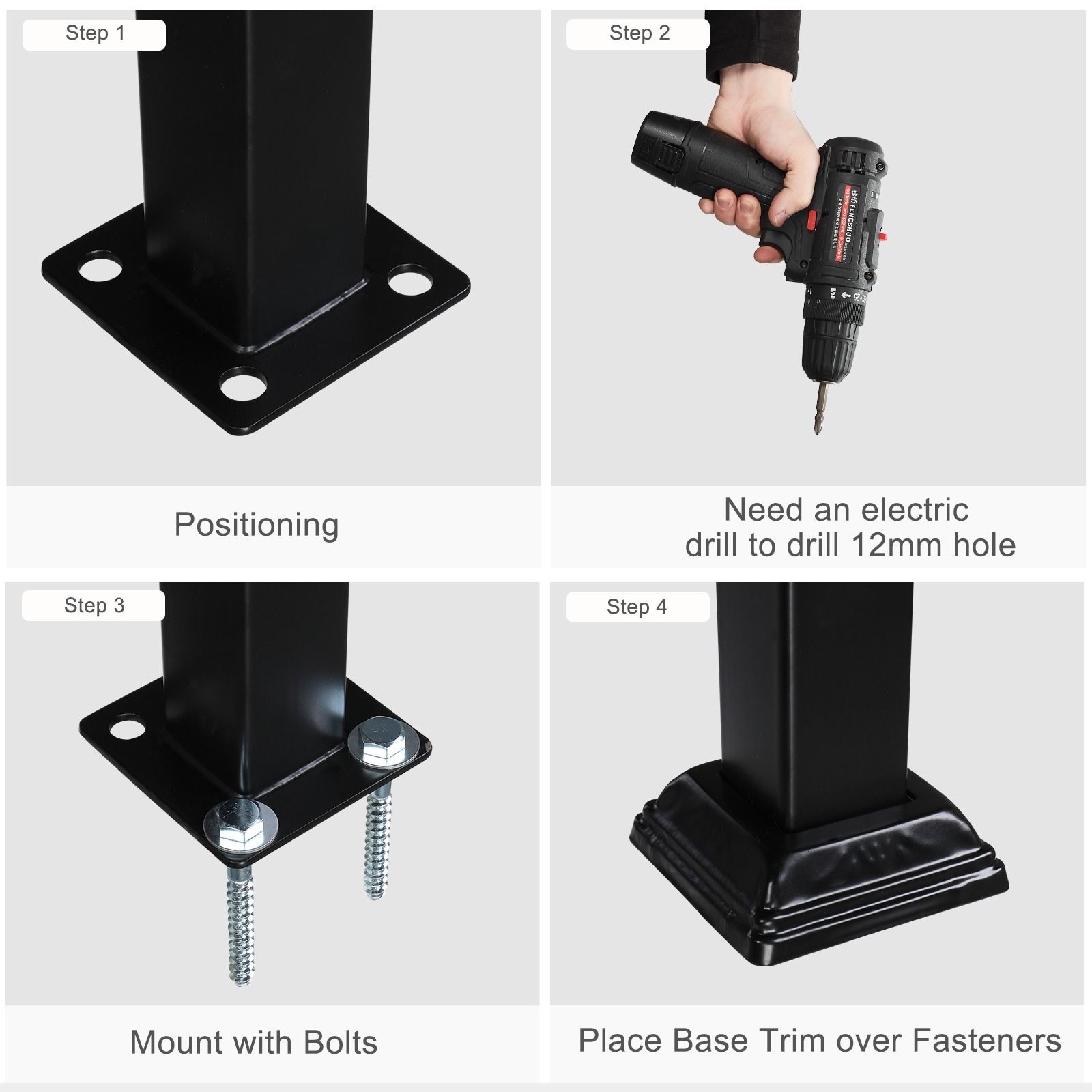 Constructed from premium black carbon steel, the railing features a powder-coated finish for enhanced weather resistance and protection against rust, scratches, and wear. Its transitional design suits a wide range of architectural styles, making it a practical and stylish upgrade for any exterior.