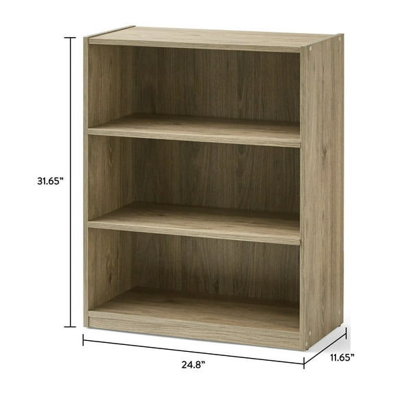Add the sleek  3-Shelf Bookcase with Adjustable Shelves to any room for a functional and stylish look. This sturdy storage unit has a closed back design with one fixed shelf that holds up to 50 lbs, and two adjustable shelves that support up to 35 lbs each. Quick and easy to assemble, this attractive bookshelf is a useful storage option for any office, living room, family room, den and more. At 31" tall the  3-Shelf Bookcase is perfect for small and medium rooms where smart, efficient storage is needed. The adjustable shelves accommodate everything from paperbacks to large folios, perfect for small libraries and collections.